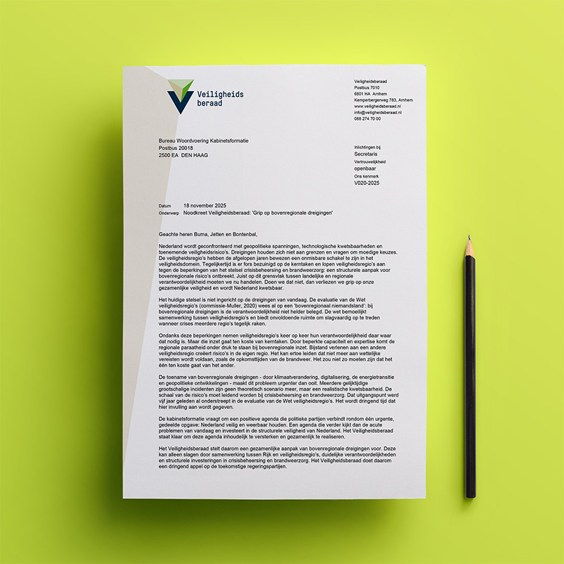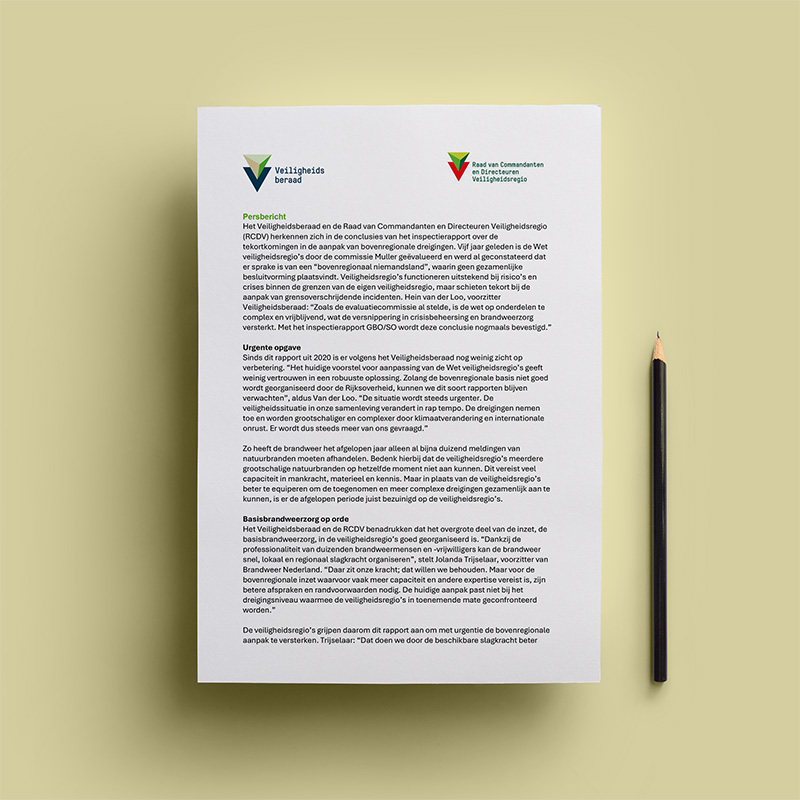 Het Veiligheidsberaad bestaat uit de voorzitters van de 25 veiligheidsregio’s die met elkaar van gedachten wisselen over strategische en integrale veiligheidsvraagstukken en -ontwikkelingen van nu en in de toekomst. Van de evaluatie van de Wet veiligheidsregio’s tot aan cyber security. Ook neemt het Veiligheidsberaad landelijk bestuurlijke standpunten in namens de veiligheidsregio’s en is gesprekspartner van de minister van Justitie en Veiligheid.